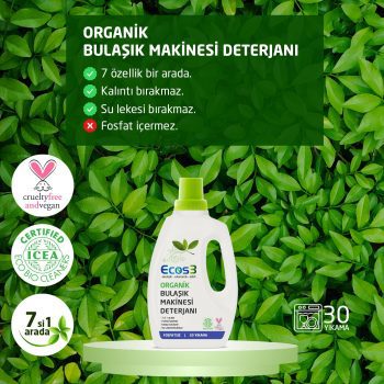 Avec sa fonction de nettoyage très efficace et sa formule tout-en-un, le détergent pour lave-vaisselle Ecos3 assure un nettoyage parfait, même sur les taches les plus difficiles. Grâce à son effet brillant, il ne laisse pas de taches d’eau sur la vaisselle et procure une brillance supérieure sur le verre et la porcelaine. Il prévient le ternissement de la vaisselle en éliminant la dureté de l’eau. Grâce à sa formule spéciale, il empêche la formation de rayures sur la vaisselle en verre et protège la vaisselle. Il prévient le ternissement et la corrosion des métaux. Il se dissout rapidement et ne s’agglomère pas dans le compartiment à détergent de la machine. Facile à rincer, il ne laisse aucun résidu. Protège les parties métalliques du lave-vaisselle.